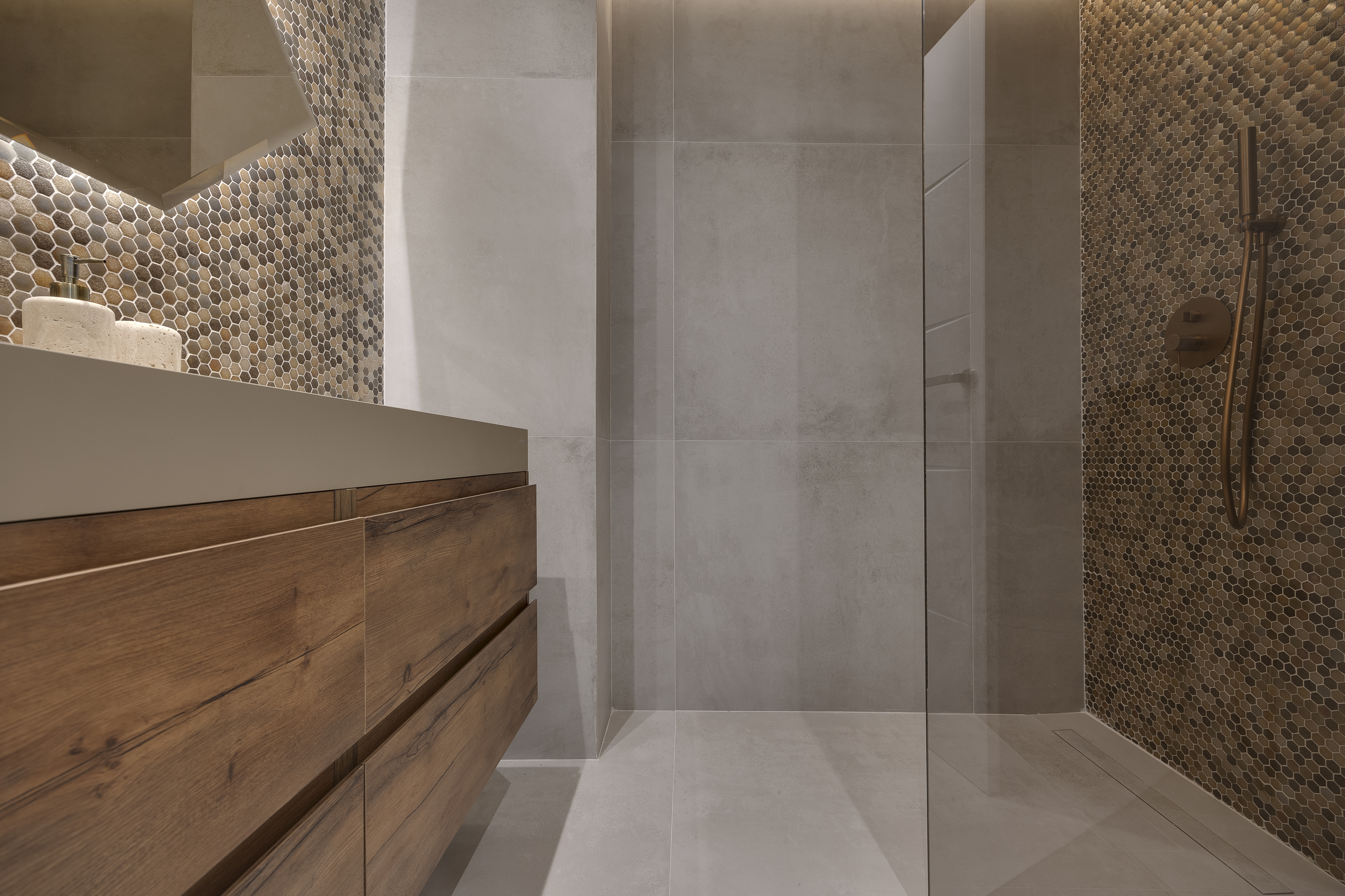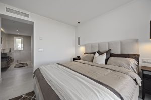 El segundo dormitorio también dispone de baño en suite, mientras que el tercero se sitúa junto a un baño completo independiente con ducha.