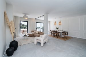 Apartamento excepcionalmente espacioso, totalmente renovado, de 3 dormitorios con una gran terraza y vistas al mar, al campo de golf y a la montaña, en una tranquila zona residencial de La Quinta, a poca distancia del Club de Golf La Quinta y sus servicios, incluyendo un spa y gimnasio de 5 estrellas.